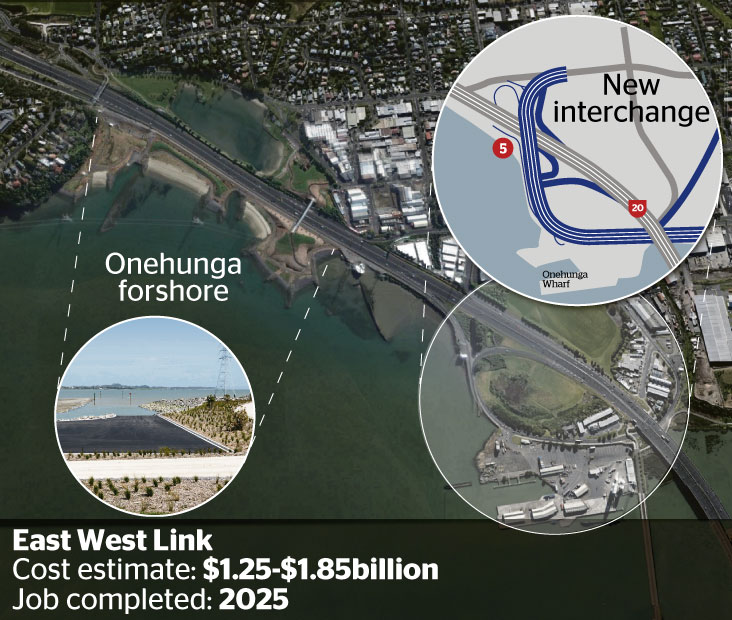 Auckland highways manager Brett Gliddon said the East West project would not stop plans to redevelop the port. There are no plans to bulldoze or undo any of the work it recently completed as part of the regenerated and developed Onehunga Foreshore. READ MORE